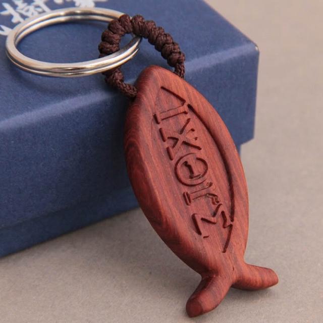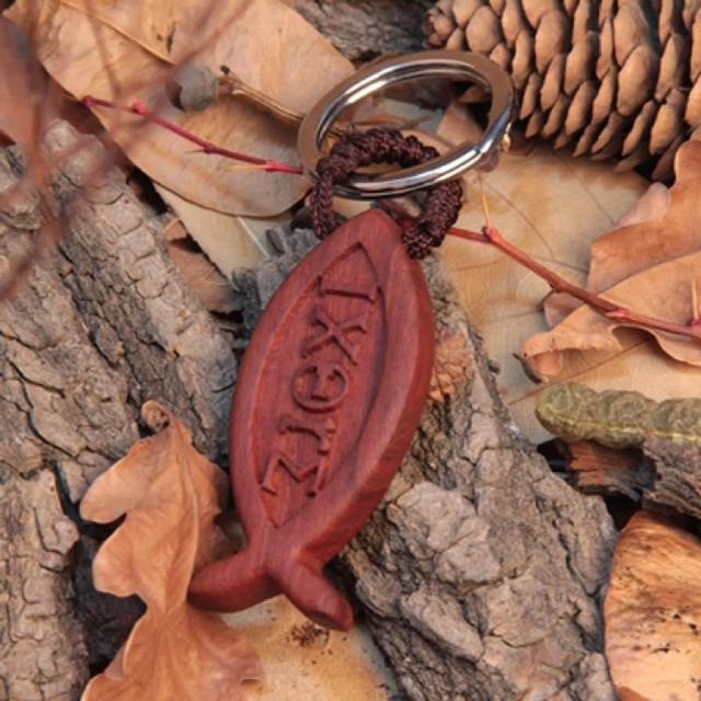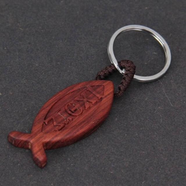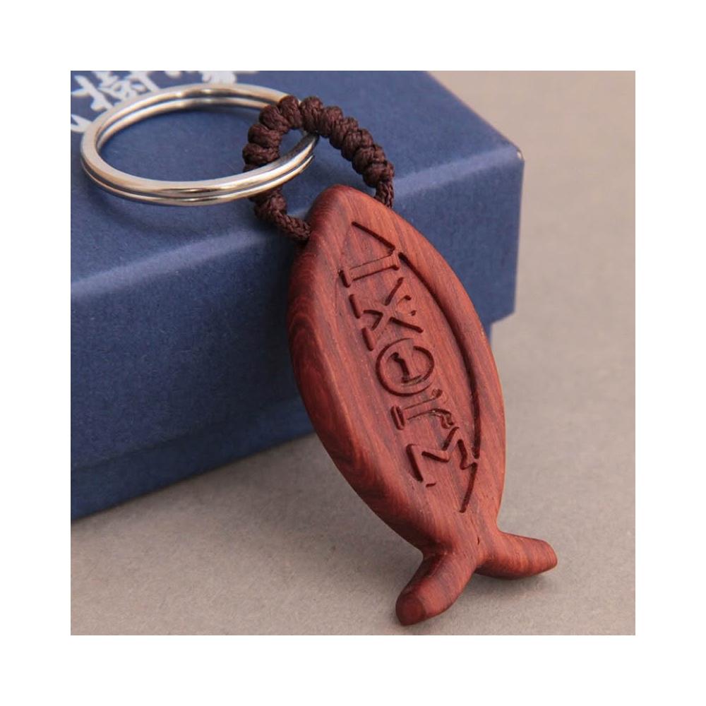 佳音書坊/鑰匙圈 佳音書坊 SJ-FISH-4 基督魚鑰匙扣特色木藝創意禮品盒裝 材質:紅檀木