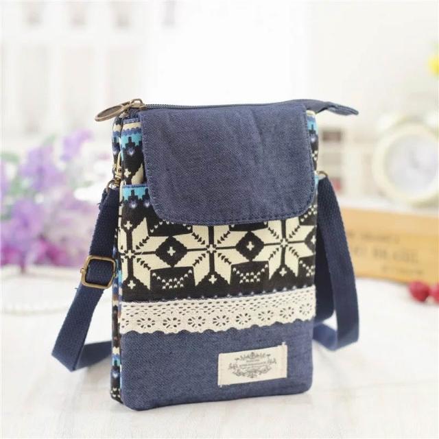 佳音書坊/生活用品 SJ-BAG7民族風大屏棉布5層斜跨手機包 女生斜背包 隨身小包 規格:高19公分X寬13.5