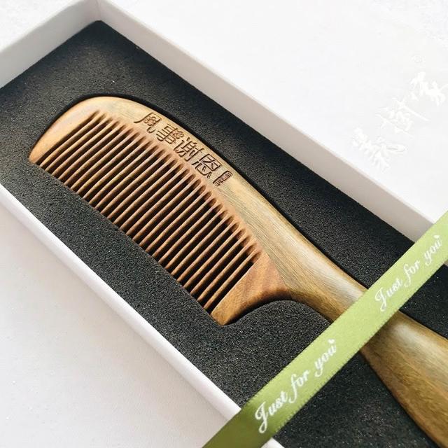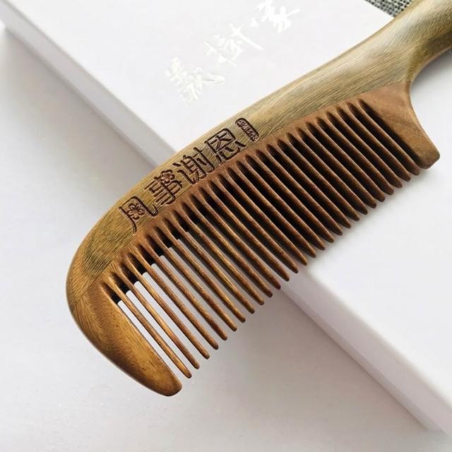 佳音書坊/生活用品 comb-1綠檀按摩經文木梳禮盒 尺寸:18*4.7公分 材質:綠檀木 售價:680元