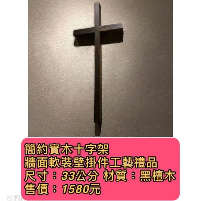 佳音書坊/十字架/壁掛 簡約實木十字架牆面軟裝壁掛件工藝禮品 尺寸:33公分 材質:黑檀木 售價:1580元