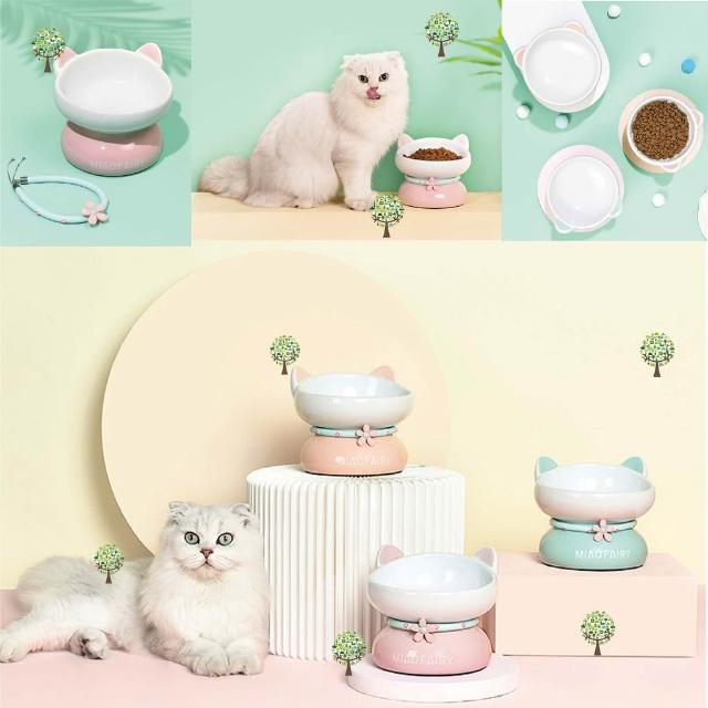 寵物陶瓷碗 貓陶瓷碗 高腳碗 寵物高腳碗 貓碗 狗碗 斜口碗 架高碗 項圈 馬卡龍色 斜口高腳碗 防滑碗