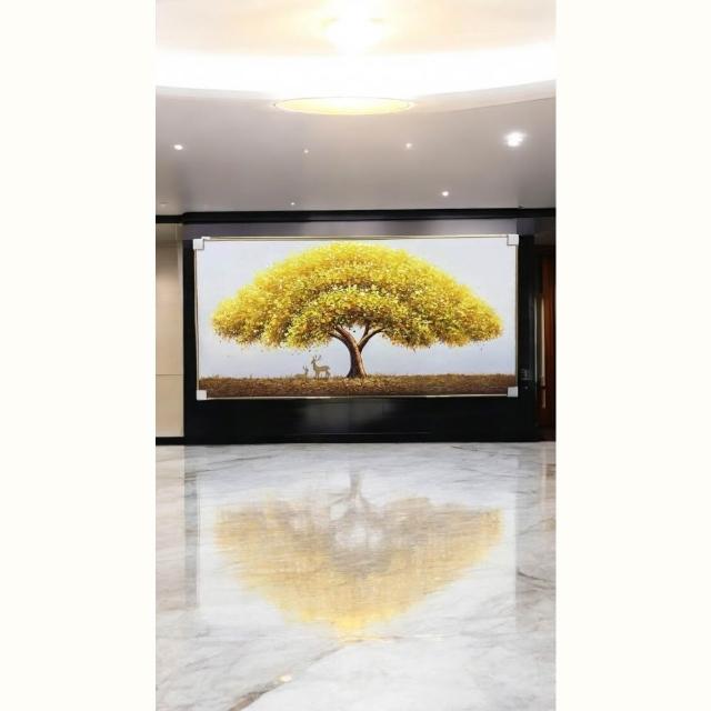 新麗畫廊四十年老店專售手繪油畫黃金樹聚財掛畫財鹿福祿雙全風水師推薦財位必備藝術掛畫招財樹