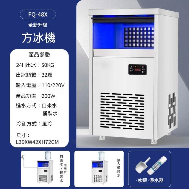 商用制冰機 全自動家用方形大型冰塊機 日產冰量50公斤 快速制冰 藍光照明 110V/220V