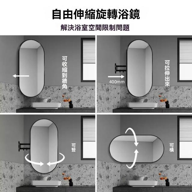 窩居旋轉浴室鏡 可折疊伸縮衛浴鏡 衛生間跑道形壁掛鏡 高清伸縮鏡