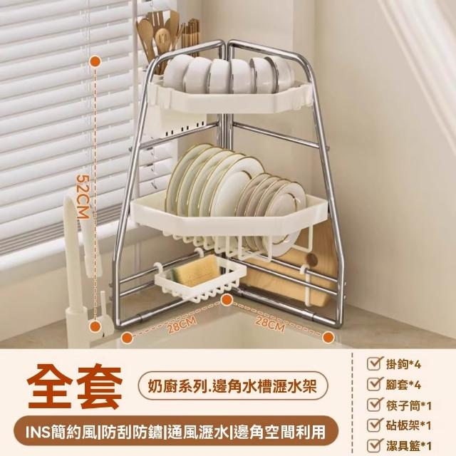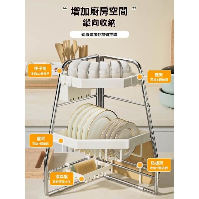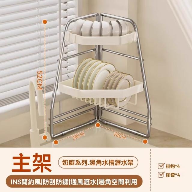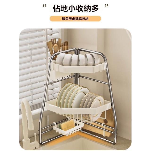 窩居廚房置物架 不鏽鋼轉角瀝水架 家用多功能碗碟收納架 雙層收納