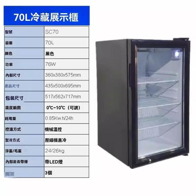 窩居70L冷藏帶鎖冰箱 商用家用玻璃門冰吧 直冷單門 酒店公寓保鮮冷藏櫃