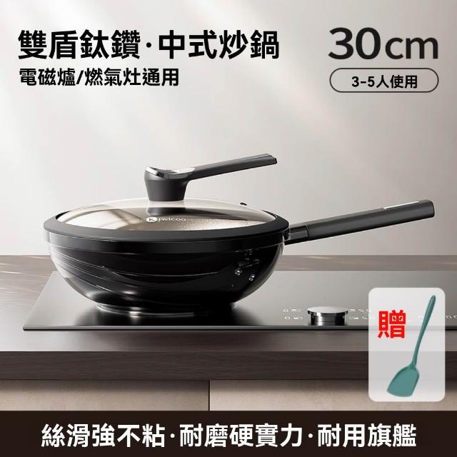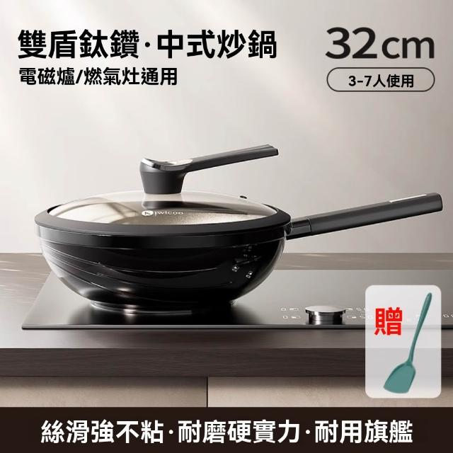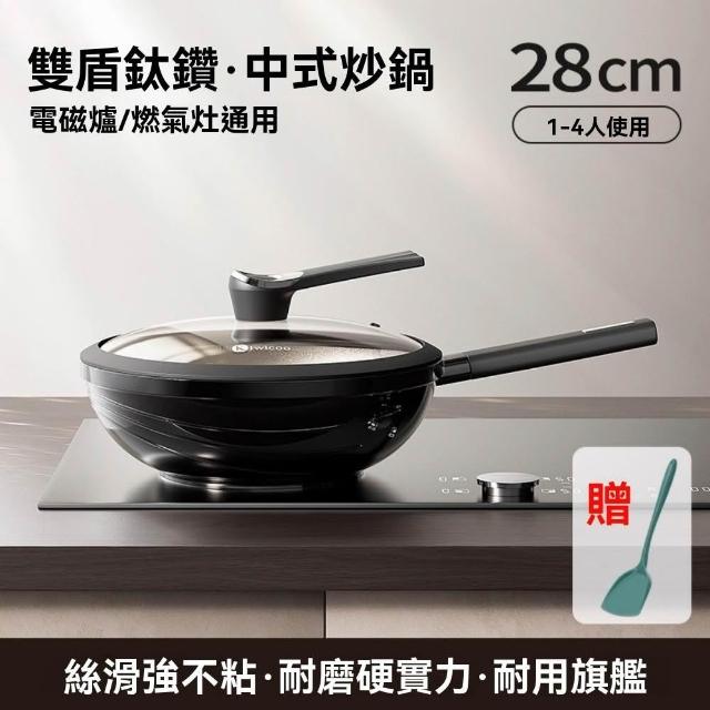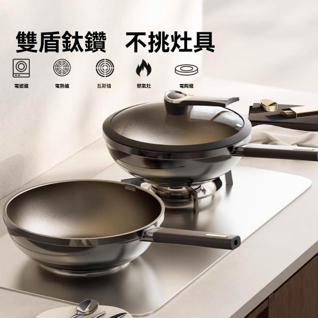 窩居鈦陶瓷不粘鍋 炒鍋 家用平底炒菜鍋 耐磨王0塗層 電磁爐燃氣竈通用