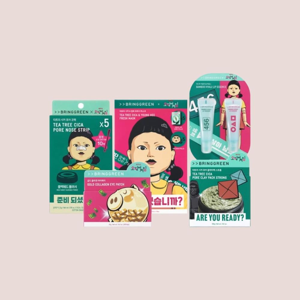 BRING GREEN魷魚遊戲 聯名款系列 唇部精華 茶樹鼻貼 眼膜 潤唇 保濕 舒緩 深層 清潔 泥膜