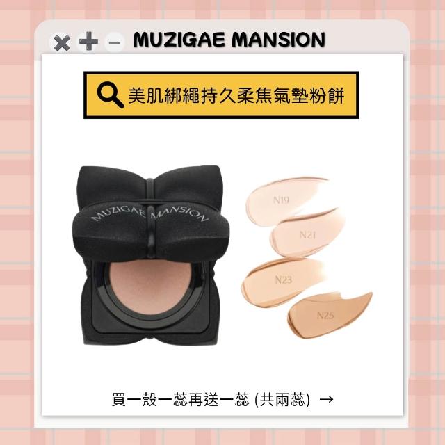 MUZIGAE MANSION美肌綁繩持久柔焦氣墊粉餅|買一殼一蕊再送一蕊 (共兩蕊)|氣墊控油 不掉妝 霧面 控油 粉餅 氣墊 毛孔 黑眼圈 遮瑕