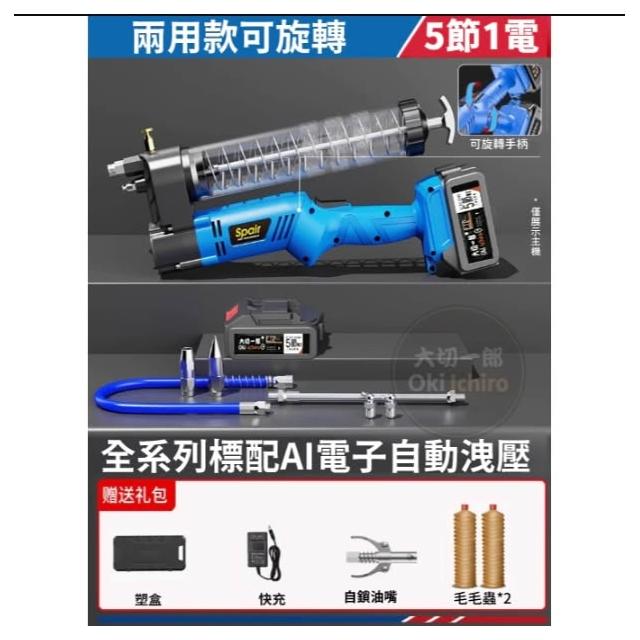 Oki 大切10000M電動黃油槍 5節1電 ⭐台灣現貨⭐ 鋰電黃油機 電動黃油槍 分體式槍頭 便攜充電式高壓挖機 全自動多功能兩