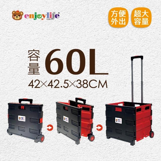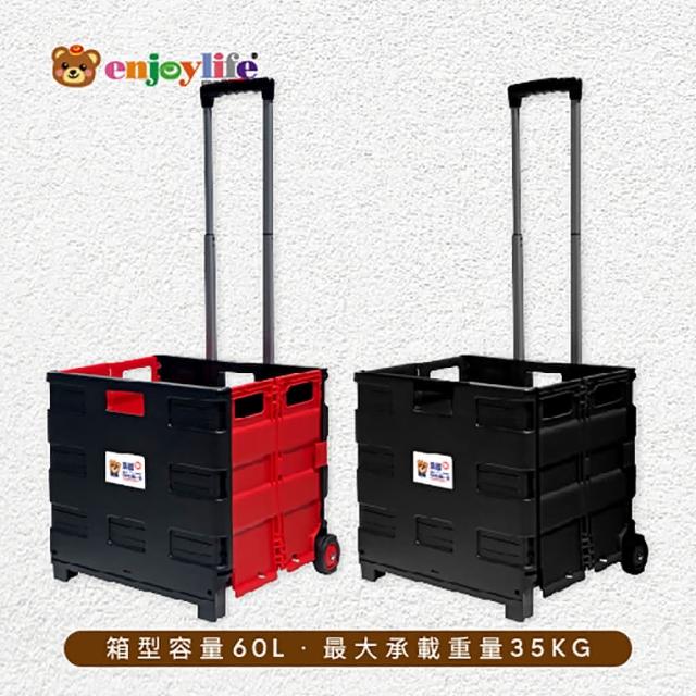 enjoylife 熊圓60L折疊箱型拉桿車(購物收納便利 快速拉拖)
