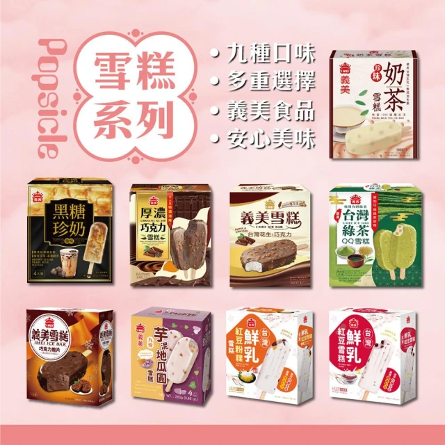 義美 經典九款雪糕4入裝/盒 任選1盒(綠茶QQ/花生巧/巧克脆片/珍珠奶茶/黑糖珍奶/厚濃巧/芋泥地瓜/鮮奶紅豆/紅豆粉粿)