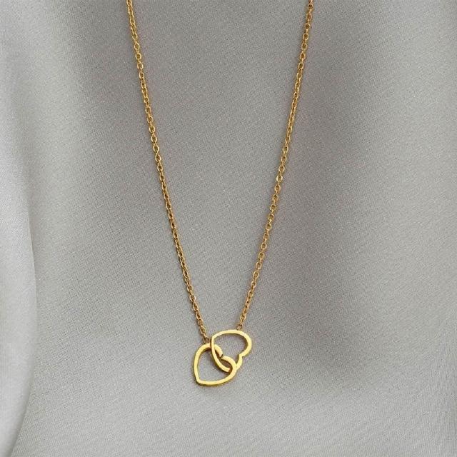 TWINKLE項鍊 鈦鋼系列|心心相印鏤空鎖骨項鍊#TW1048