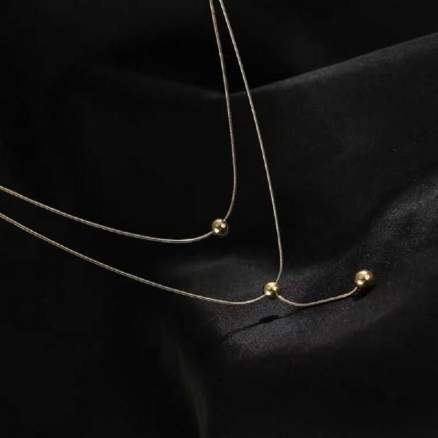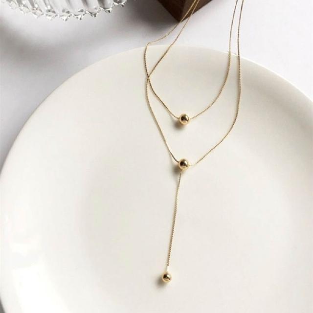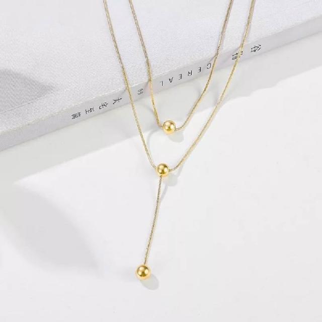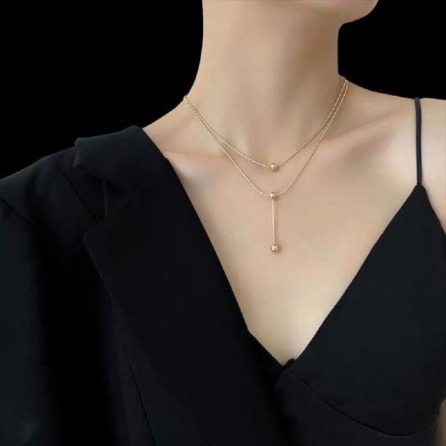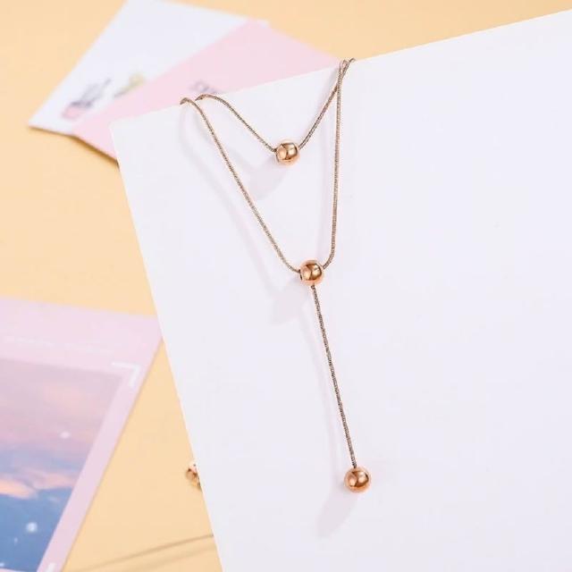 TWINKLE項鍊 鈦鋼系列|簡約光澤圓珠多層鎖骨項鍊#TW1046