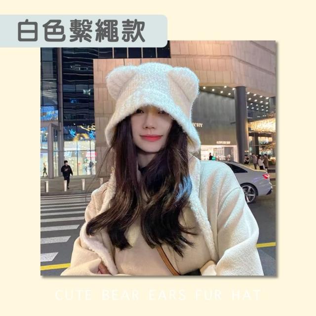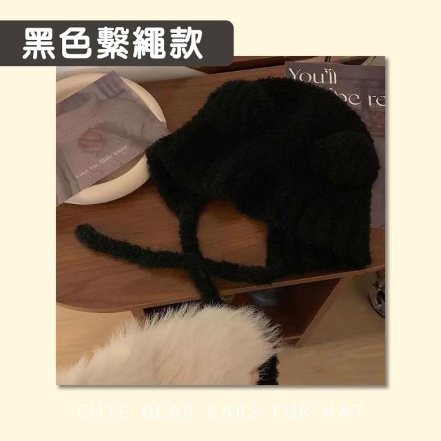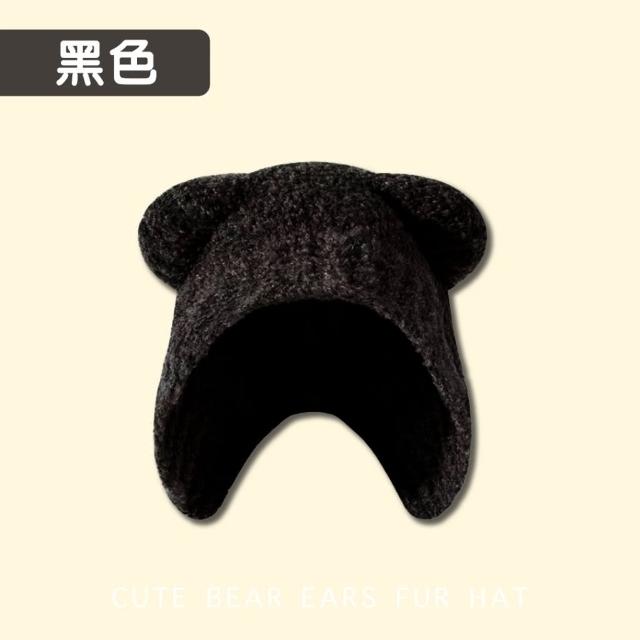 小熊毛帽 針織毛帽 針織帽 保暖 毛線帽 冬天穿搭 帽子 護耳 冬季顯臉小 小熊毛線帽 毛帽