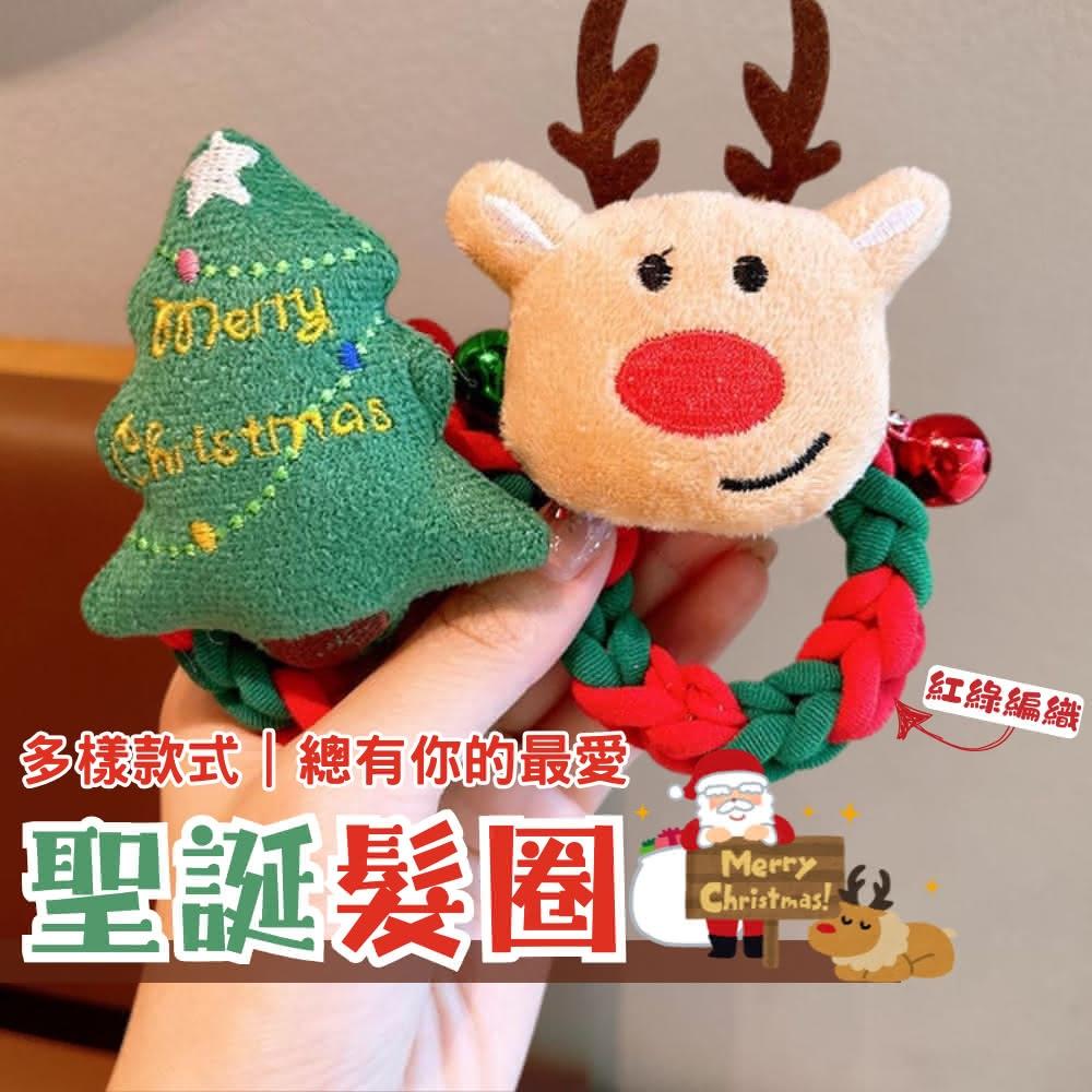 髮圈 髮夾 聖誕節 裝飾 編織髮圈 造型髮圈 交換禮物 小朋友髮圈 兒童 髮飾 聖誕樹 麋鹿 聖誕老人