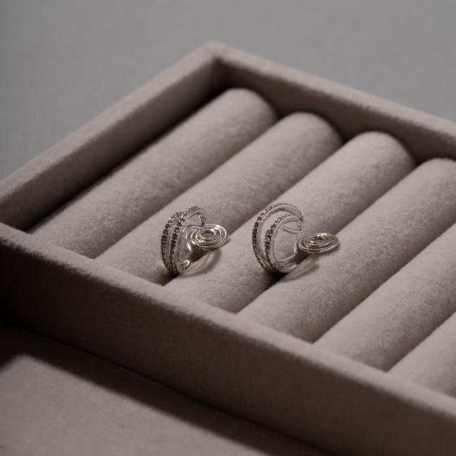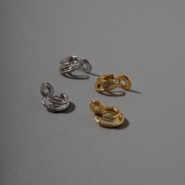 Char Me 耳夾專賣 雙排細鑲鑽耳圈.蚊香盤耳夾 - 銀色/金色(夾式耳環 耳夾 耳夾式耳環 無耳洞耳環)