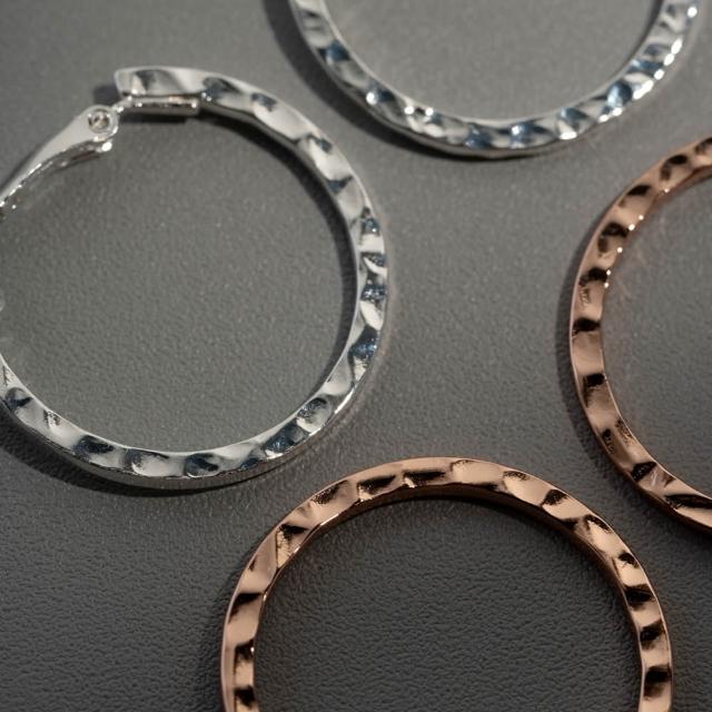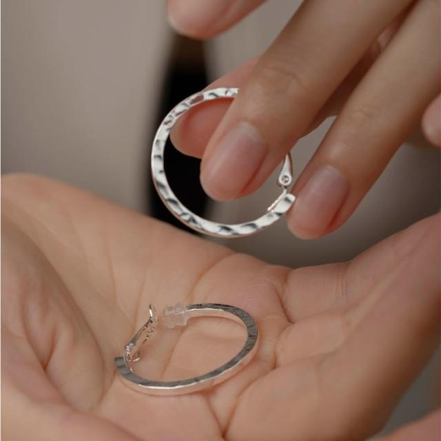 Char Me 耳夾專賣 波紋細圈.矽膠夾式圈圈耳環 3 cm - 銀色/玫瑰金色(夾式耳環 耳夾 耳夾式耳環 無耳洞耳環)