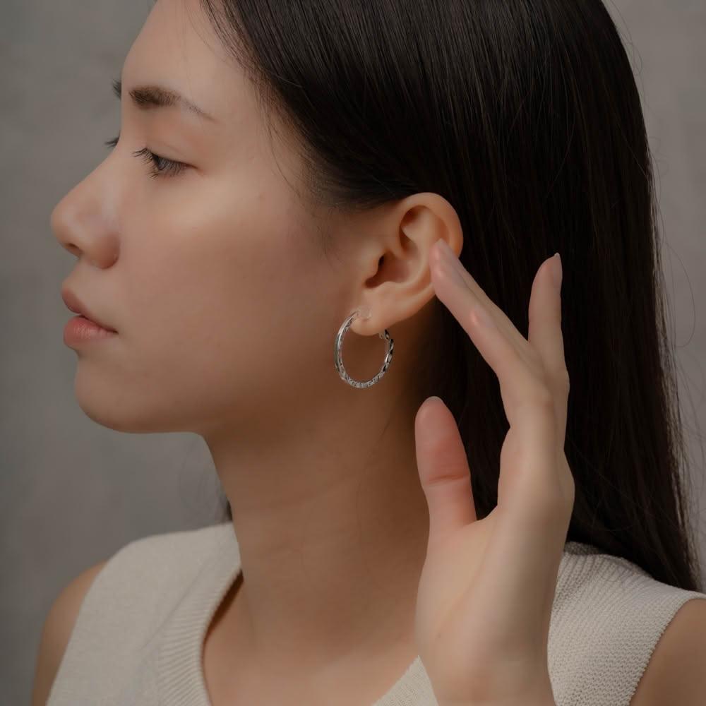Char Me 耳夾專賣 波紋細圈.矽膠夾式圈圈耳環 3 cm - 銀色/玫瑰金色(夾式耳環 耳夾 耳夾式耳環 無耳洞耳環)