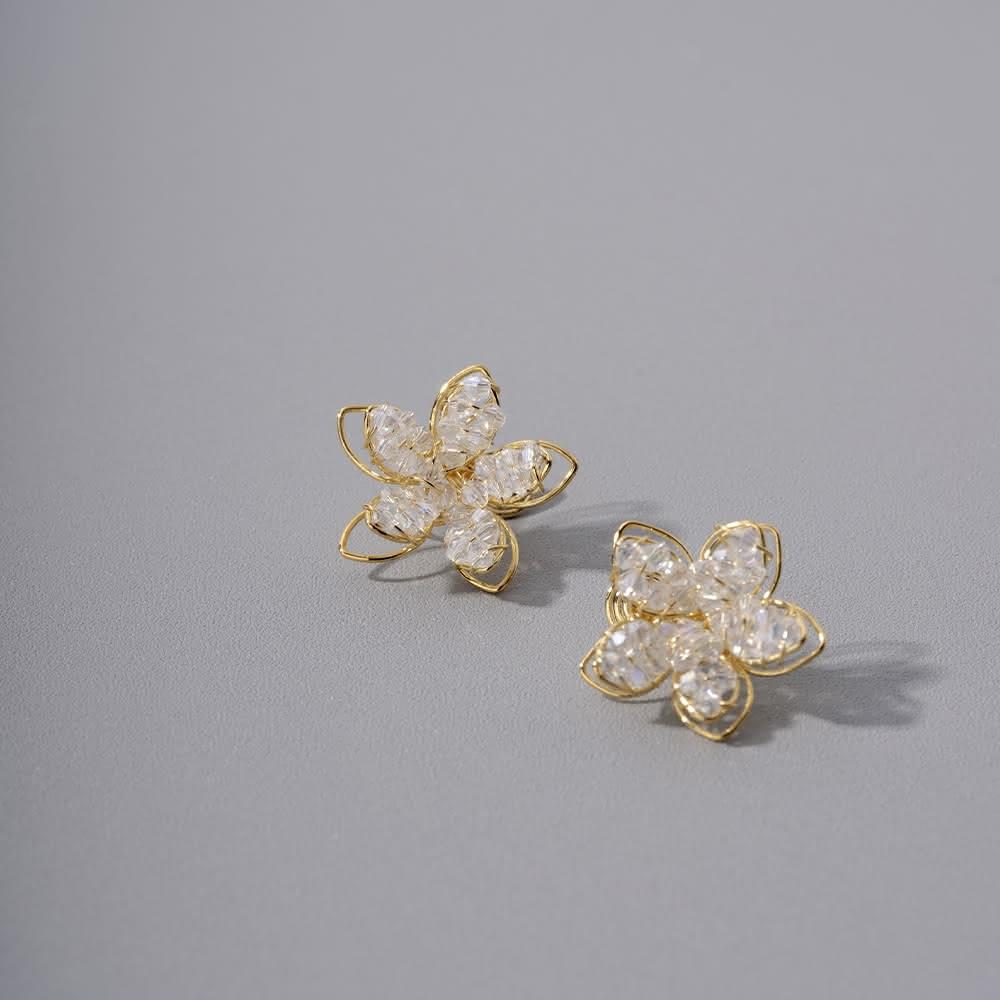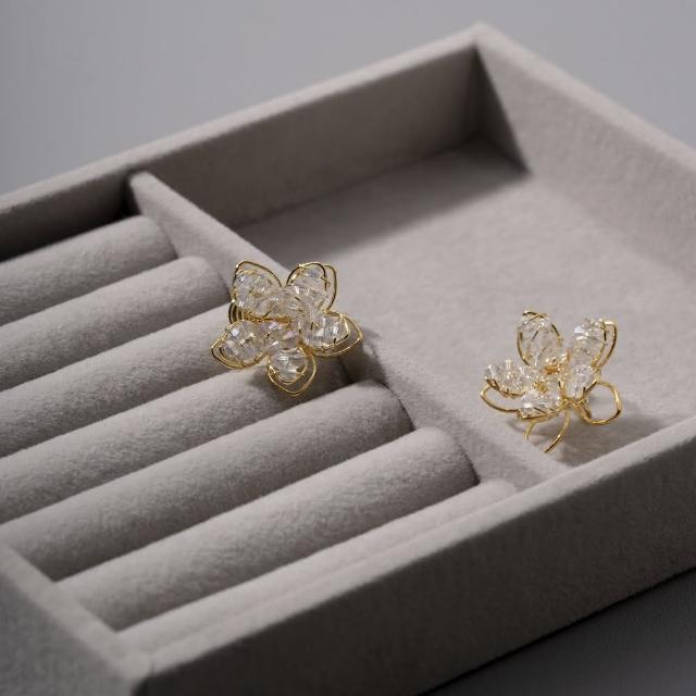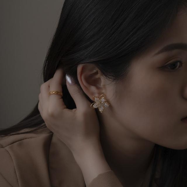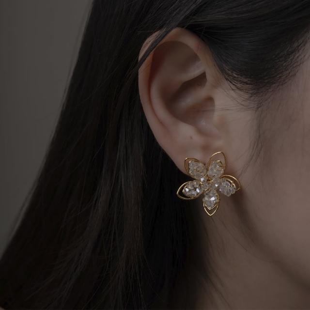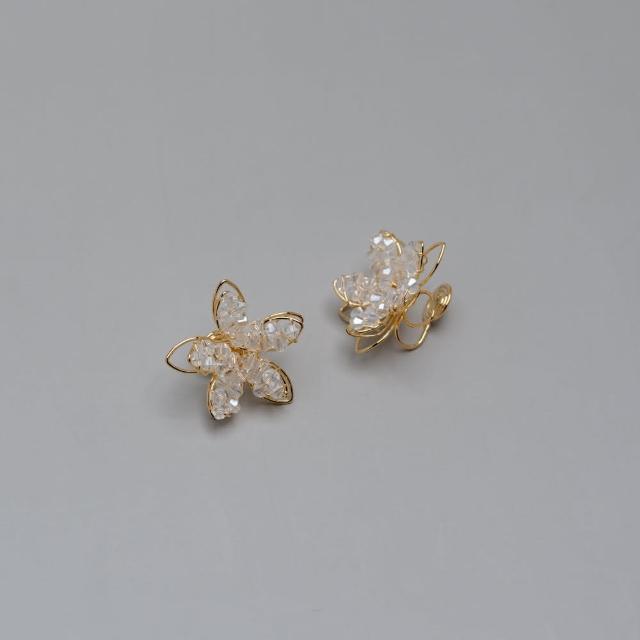 Char Me 耳夾專賣 手工水晶串珠花朵.蚊香盤耳夾 - 金色(夾式耳環 耳夾 耳夾式耳環 無耳洞耳環)