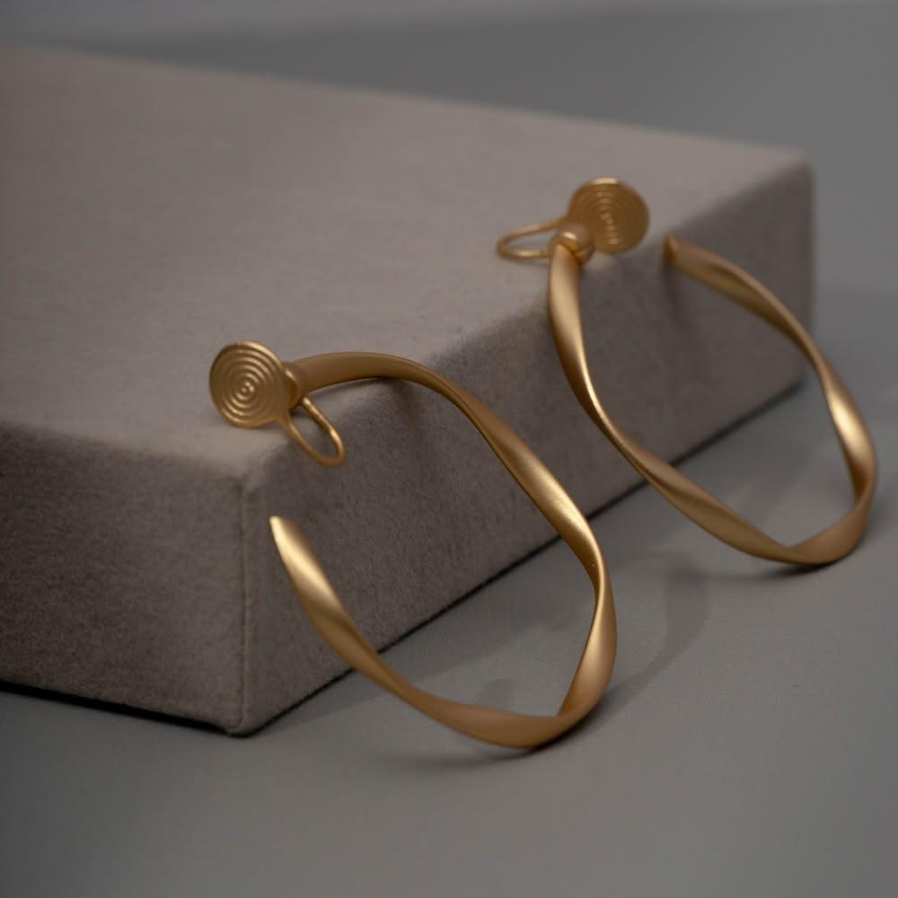 Char Me 耳夾專賣 可轉動扭結 C 圈.蚊香盤耳夾 - 霧金色 ( 4 cm)(夾式耳環 耳夾 耳夾式耳環 無耳洞耳環)