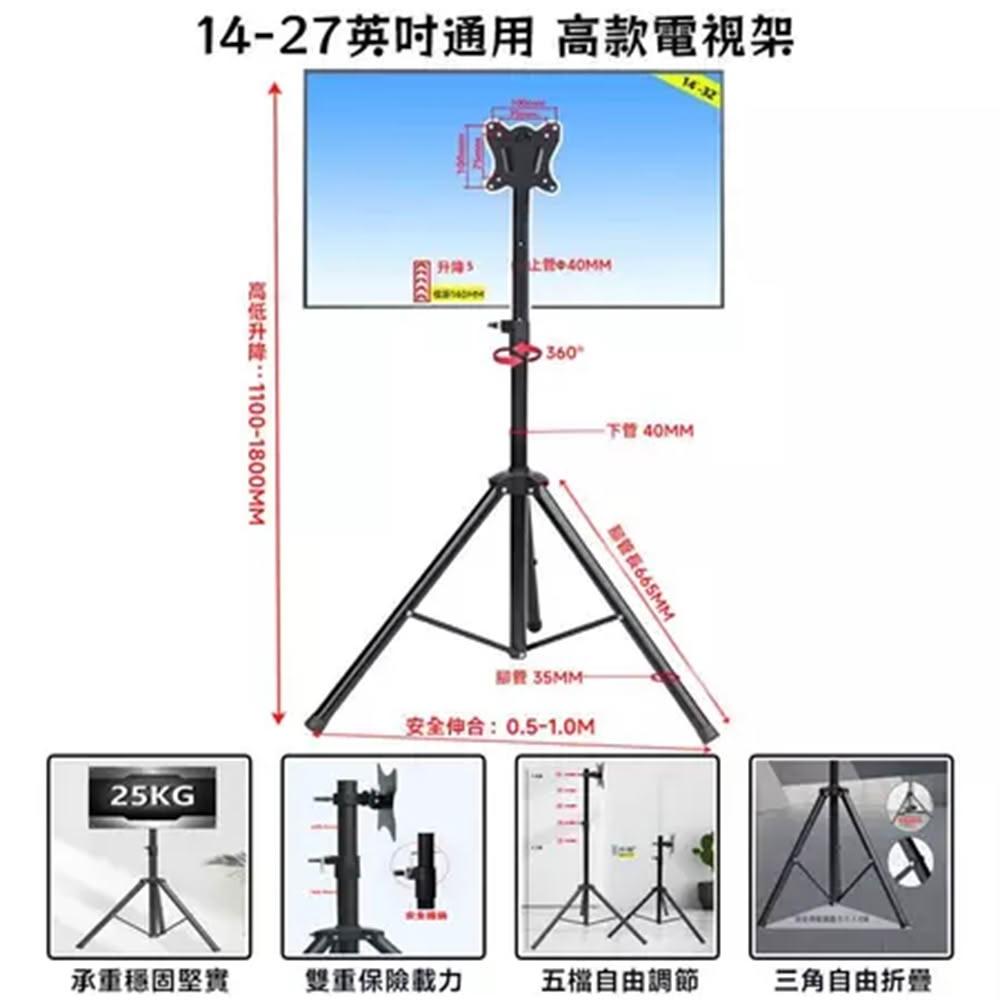 螢幕支架 三腳架 電視架 電視機架(12-32寸適用 1.8米矮款 可自由升降 新升級卡扣安裝)