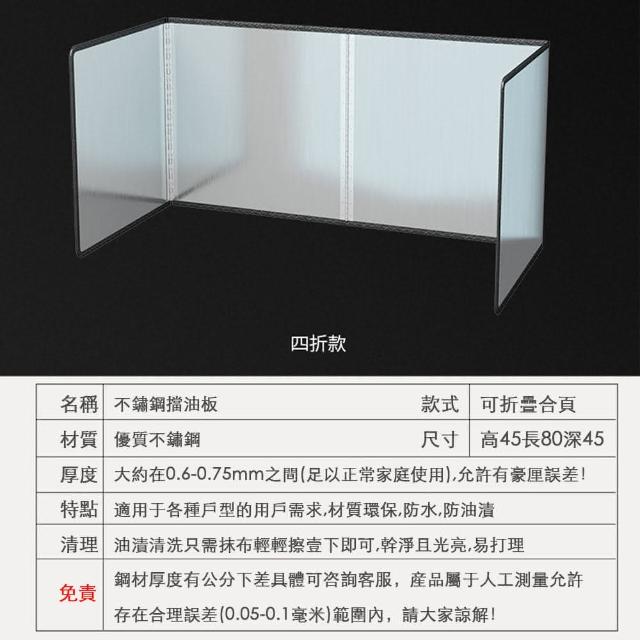 擋油板 防風隔板 不鏽鋼隔熱擋板 隔熱擋板 灶台擋油板 瓦斯爐擋油(四折45*80*45/一秒折疊/一擦即淨)