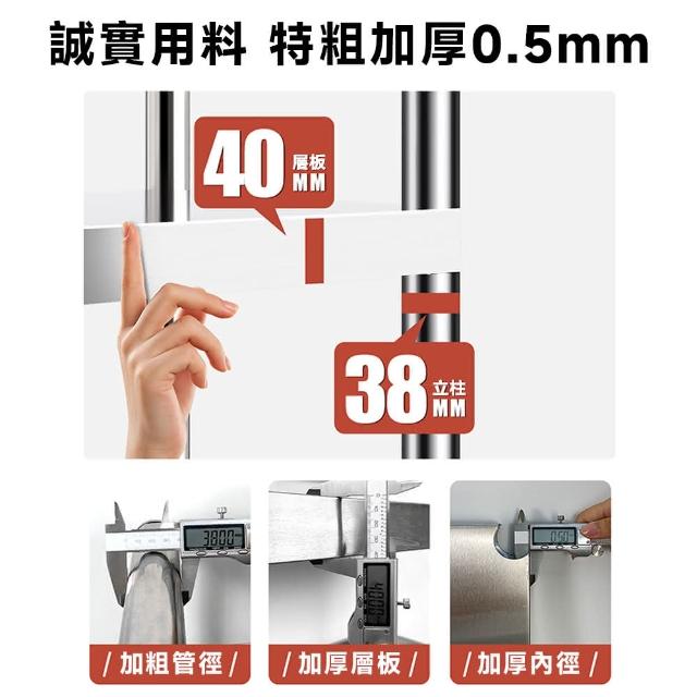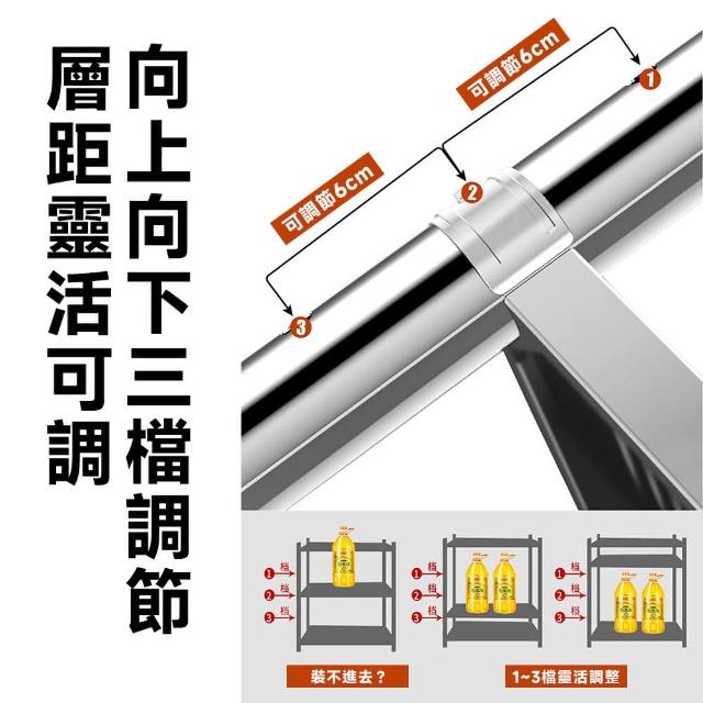 304層架 不鏽鋼置物架 不銹鋼架 廚房置物架((90×50×175cm/層高可調節/三面圍欄/三角受力結構/附輪子)