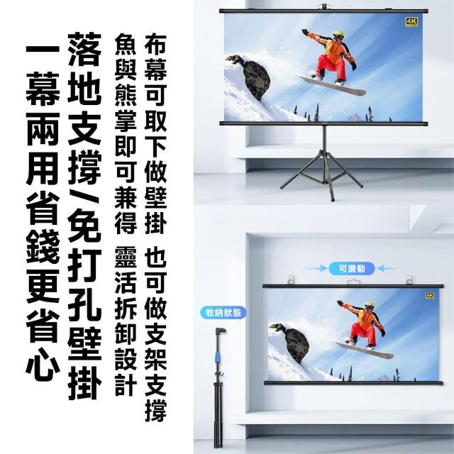 120寸布幕 便攜支架投影布幕 可壁掛 4K超顯影(支架布幕/支架落地布幕/投影布幕)