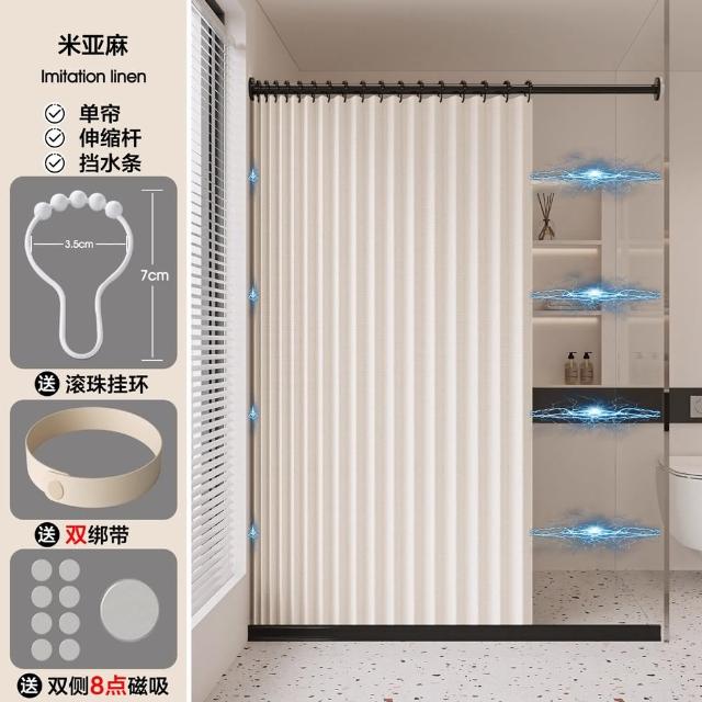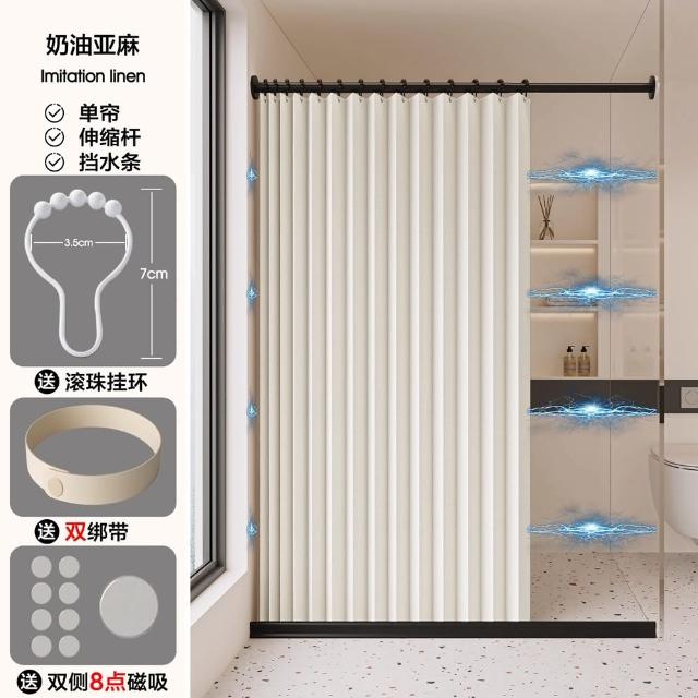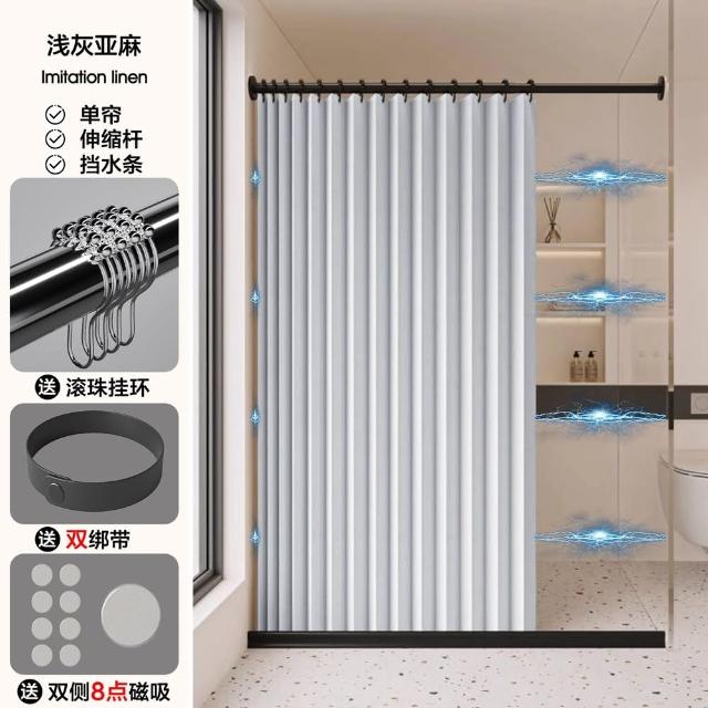 磁吸折疊浴簾 浴簾 防水浴簾 浴室門簾 浴室掛簾(高180×寬240公分/免打孔安裝/升級防水塗層/可拆卸磁釦設計/乾濕分離)