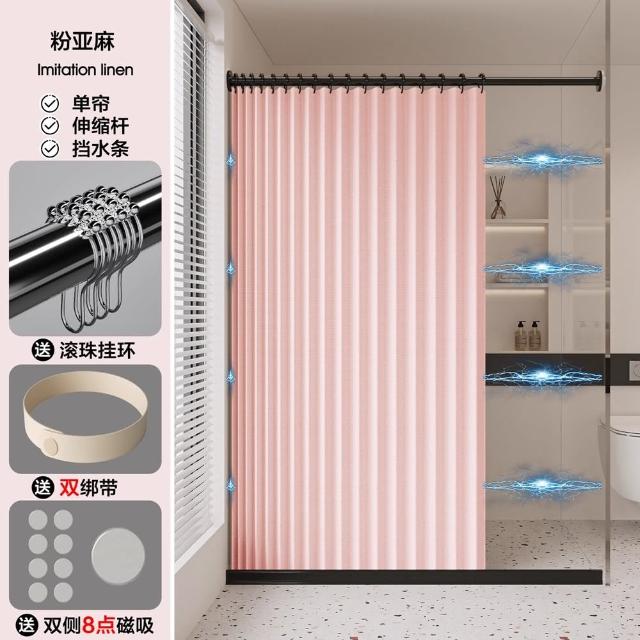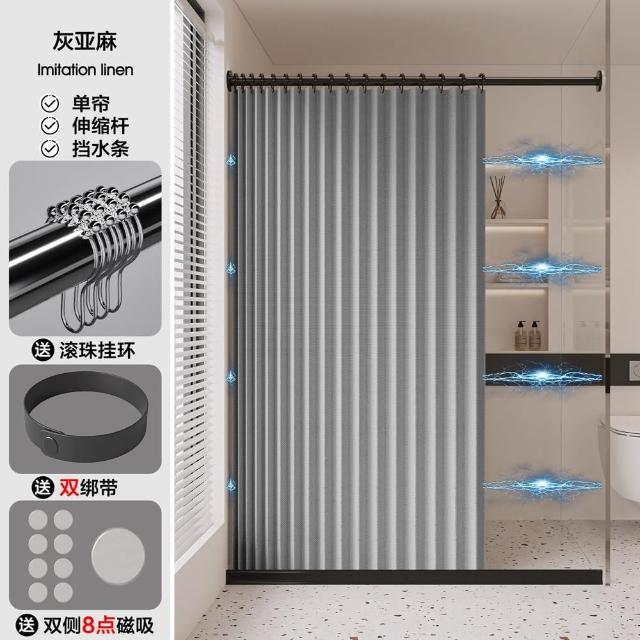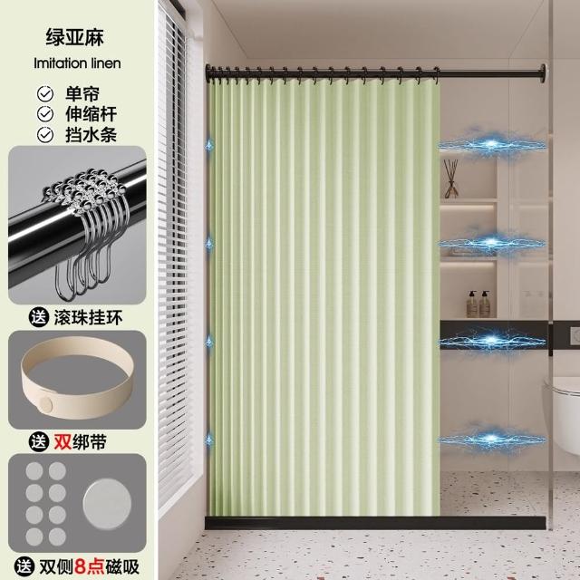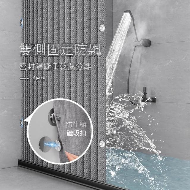 磁吸折疊浴簾 浴簾 防水浴簾 浴室門簾 浴室掛簾(高180×寬240公分/免打孔安裝/升級防水塗層/可拆卸磁釦設計/乾濕分離)