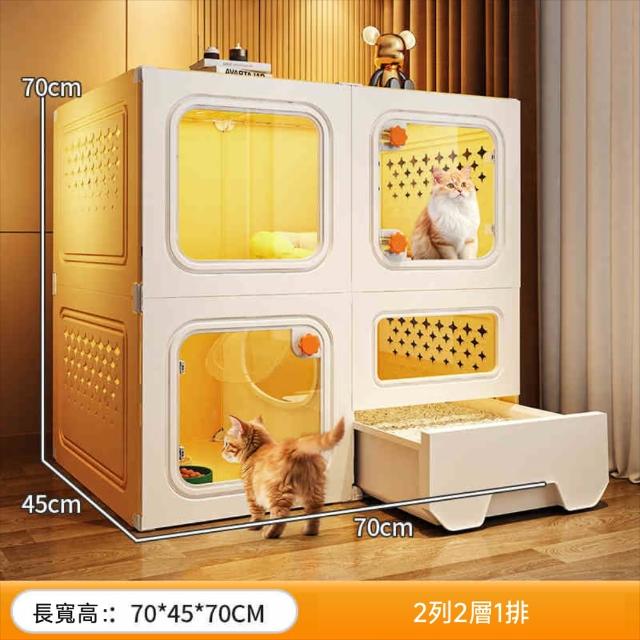 貓籠 貓別墅 貓屋 全景式貓籠 一體式貓砂盆 寵物籠 貓厠所 豪華貓別墅(贈送貓砂盆+貓砂鏟+貓窩+寵物碗)