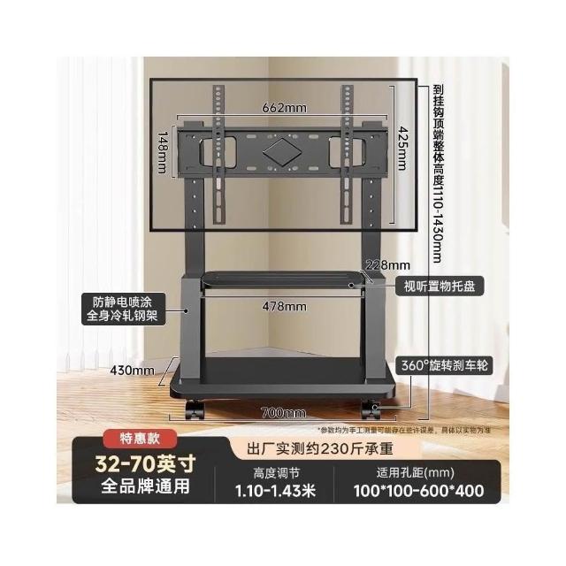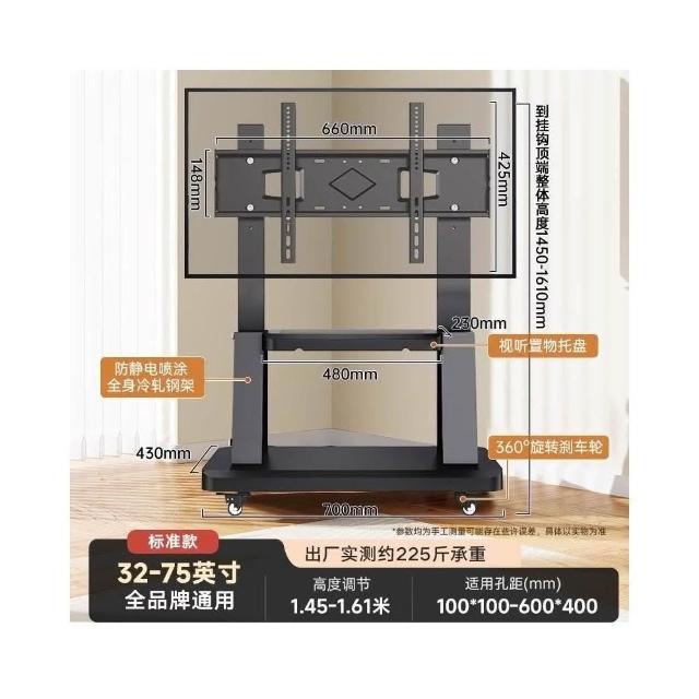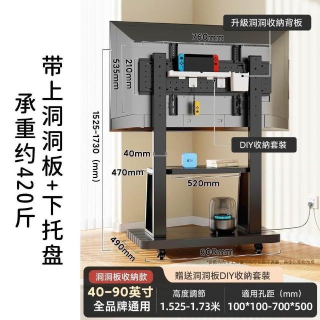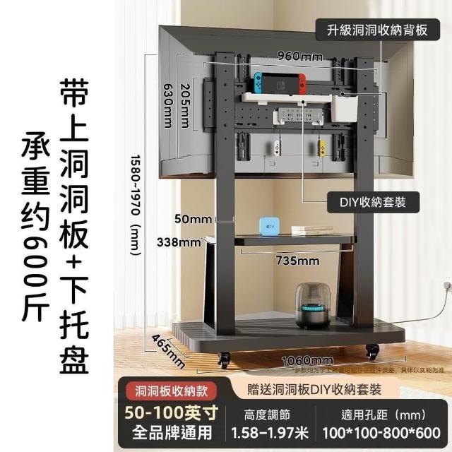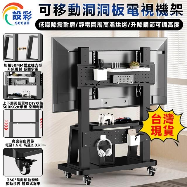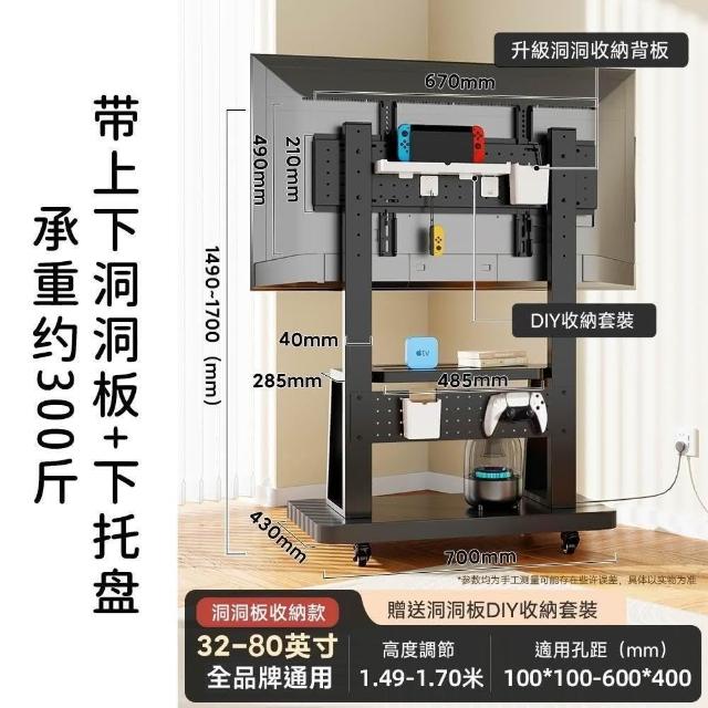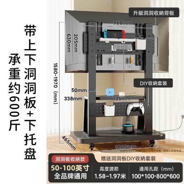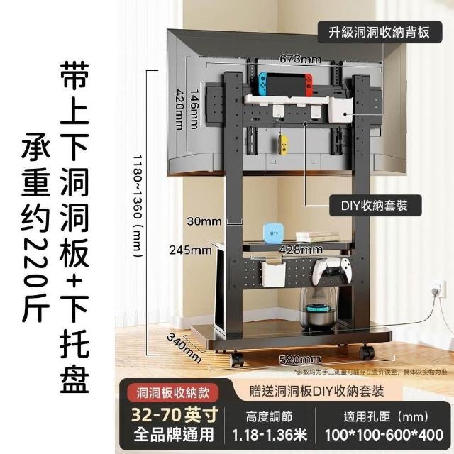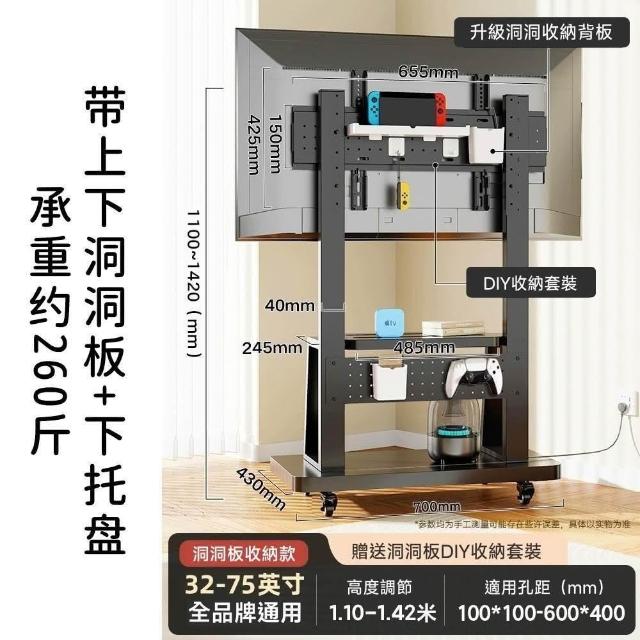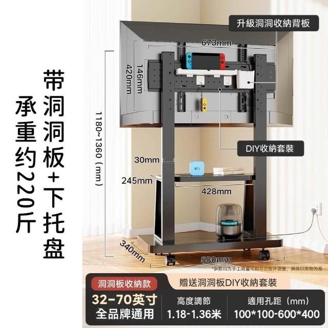 適用32~100吋電視🔥雙洞洞板電視架 電視機架 移動式電視架 電視立架(SPCC材質/承重300公斤/贈收納盒)