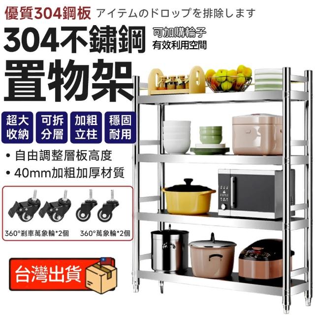 Secaii設彩品牌店 304層架 二/三/四/五層 不鏽鋼置物架 不銹鋼架 廚房收納架 收納架(自由調節層板/40mm厚度/附帶萬向輪)