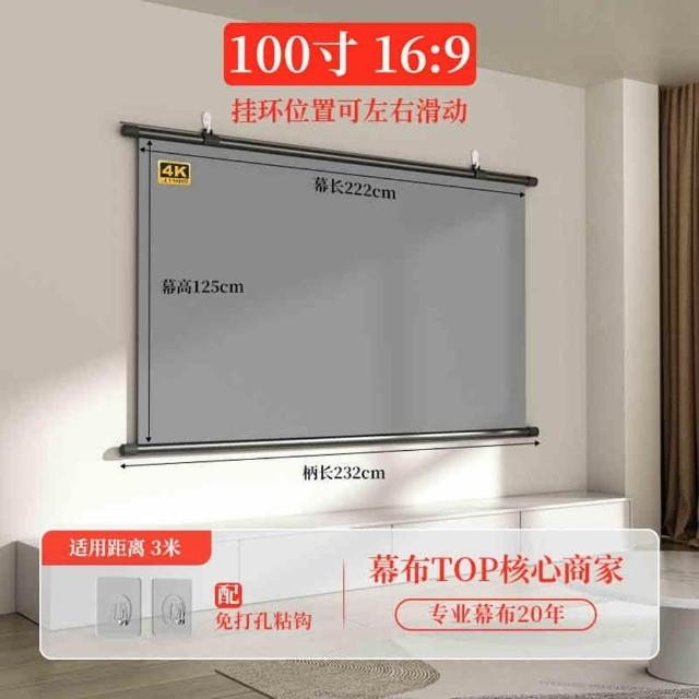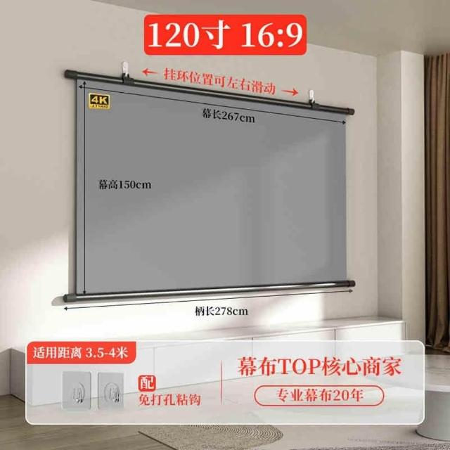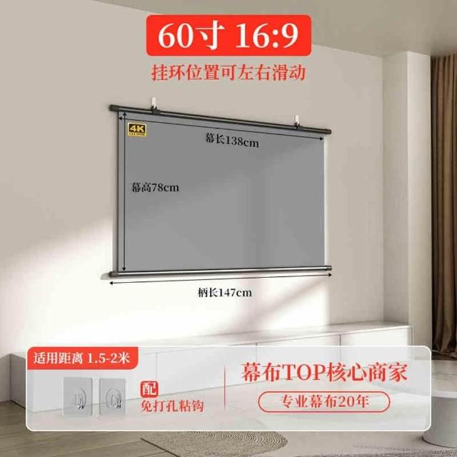 60-120吋投影布幕 投影布幕 金屬布幕 布幕(4K金屬抗光幕/高亮增益3.5倍/自由調節挂鈎/合金鋼管)
