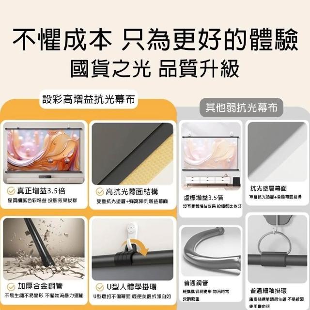 60-120吋投影布幕 投影布幕 金屬布幕 布幕(4K金屬抗光幕/高亮增益3.5倍/自由調節挂鈎/合金鋼管)