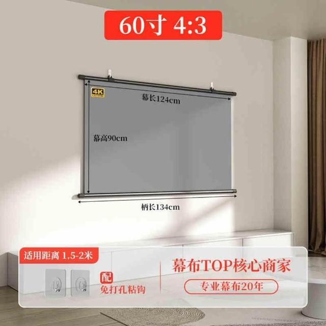 60-120吋投影布幕 投影布幕 金屬布幕 布幕(4K金屬抗光幕/高亮增益3.5倍/自由調節挂鈎/合金鋼管)