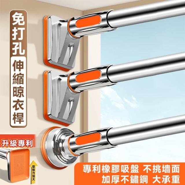 通用型免打孔伸縮桿 不鏽鋼伸縮桿 窗簾桿 晾衣架陽台桿 加長款伸縮桿 門簾桿(橡膠墊片/32mm管徑/可自由伸縮/贈送掛環)