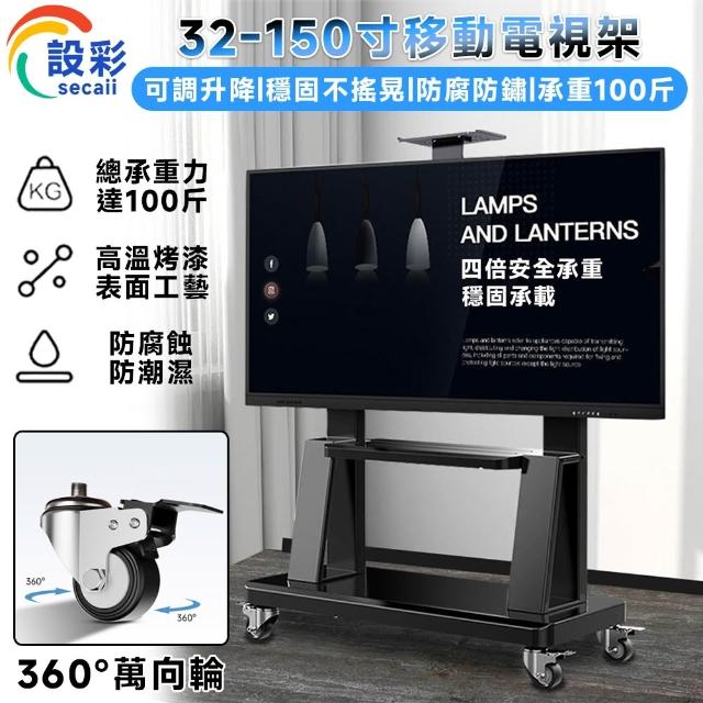 設彩旗艦店 適用32-150吋液晶電視 移動電視架 移動式電視支架 推車架 立式電視架(置物托盤/一體面板/雙層置物)