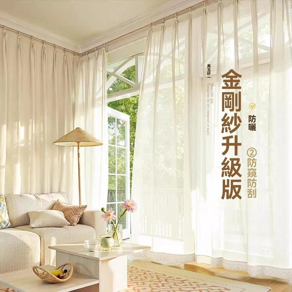 設彩旗艦店 紗簾 窗簾紗 透光窗簾 窗簾 薄紗窗簾 透光不透人 半遮光窗紗(送綁帶+掛環+四爪勾/可掛勾/穿桿)