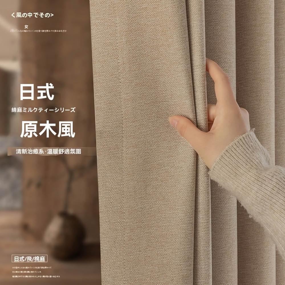 設彩旗艦店 日式亞麻窗簾 棉麻窗簾 遮光窗簾 免打孔窗簾遮光簾 門簾 窗簾布 隔音窗簾(天鵝麻/自然垂順/高度遮光/柔軟透氣)