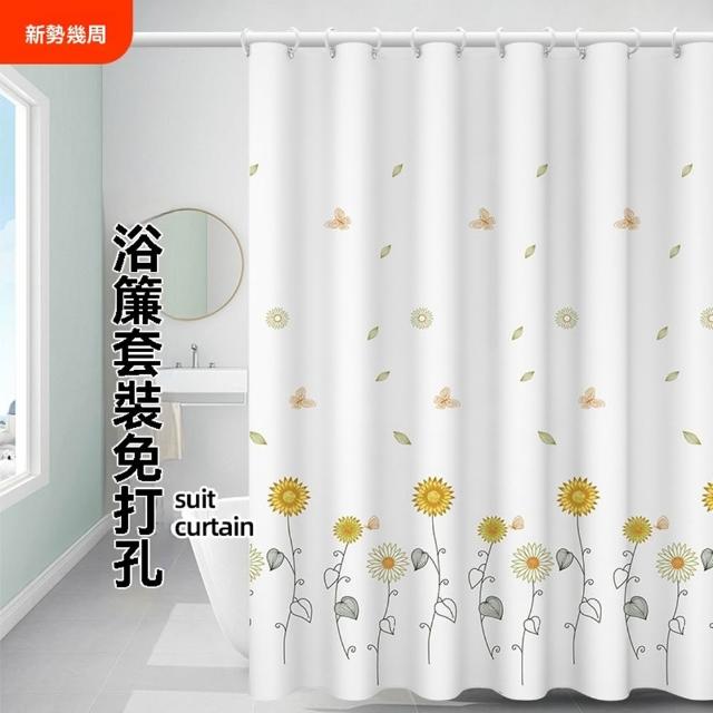 設彩旗艦店 浴簾 免打孔浴簾 浴室簾 淋浴簾 防水浴簾 防水浴簾 防黴浴簾透光浴簾(垂順耐髒不沾身/滾珠防水/透光不透人)