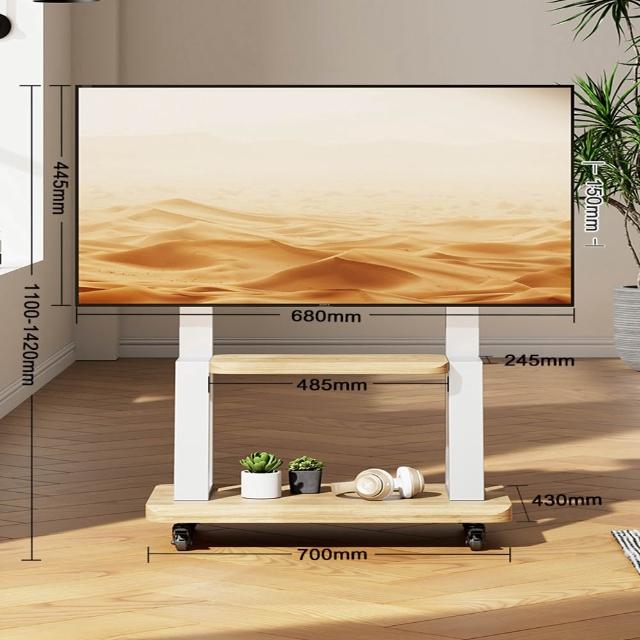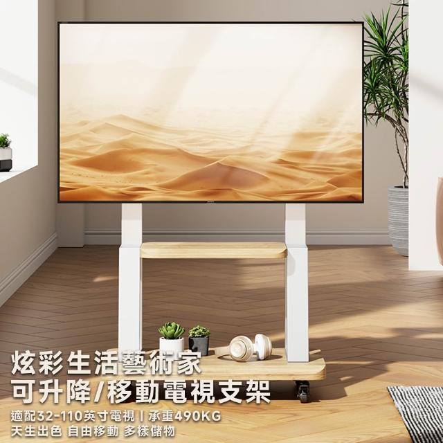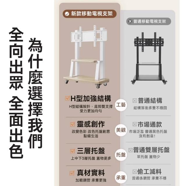 Secaii設彩品牌店 可移動電視機支架 落地式支架 電視立架 顯示器移動架(通用32-70吋/雙層置物盤/高度可自由調節)