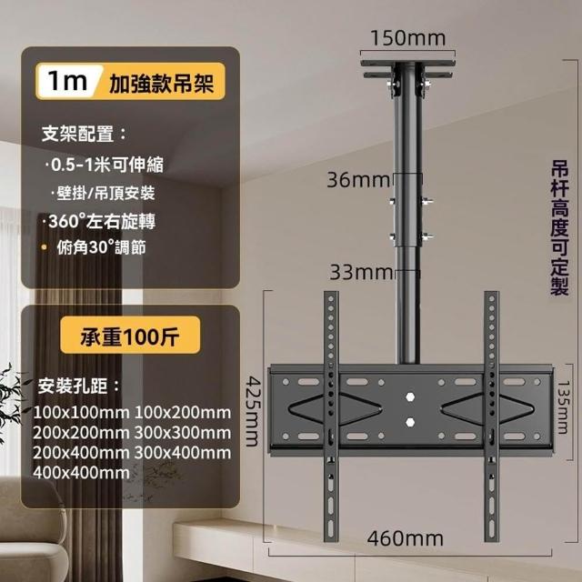 Secaii設彩品牌店14"-100"吋通用 旋轉電視架 吊掛電視架 電視吸頂 懸吊架(45°仰俯角/升降調節)