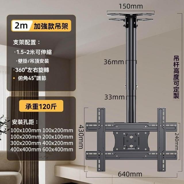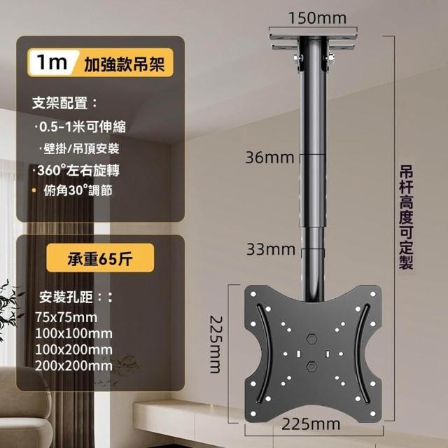 Secaii設彩品牌店14"-100"吋通用 旋轉電視架 吊掛電視架 電視吸頂 懸吊架(45°仰俯角/升降調節)