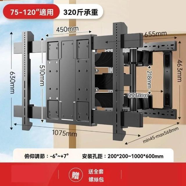 通用32-120寸 手臂式液晶電視壁掛架 伸縮電視架 電視掛架(升級六臂拉伸/多維度調節)