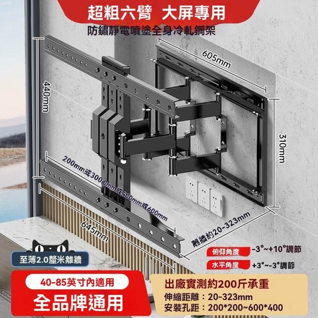 新升級八臂實心軸🔥電視架 電視掛架 壁掛電視架 伸縮電視架 電視機架(左右調節+俯仰角調節)