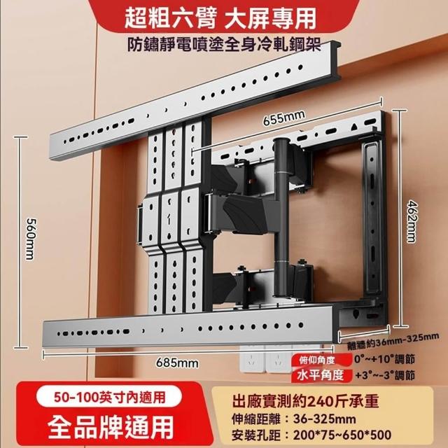 新升級八臂實心軸🔥電視架 電視掛架 壁掛電視架 伸縮電視架 電視機架(左右調節+俯仰角調節)