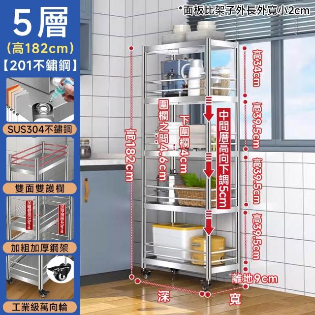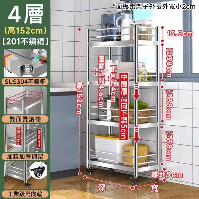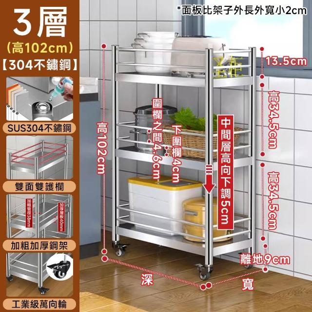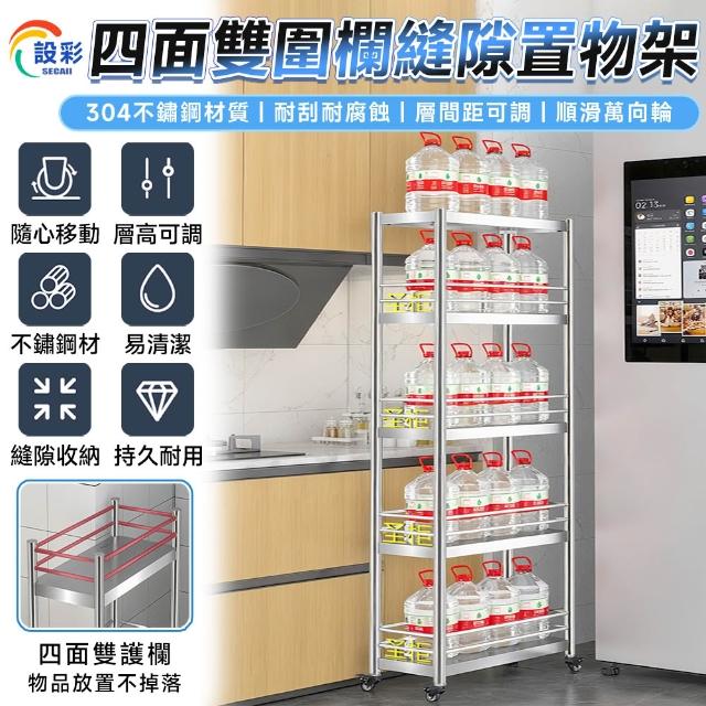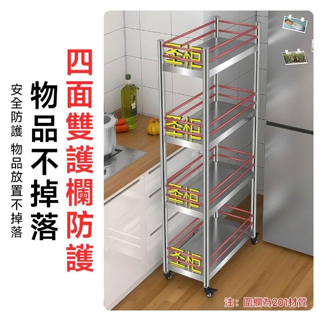 不鏽鋼層架 縫隙櫃 電器架(四面雙護欄 層高可調 贈萬向輪)不銹鋼架 不鏽鋼架 層架 置物架