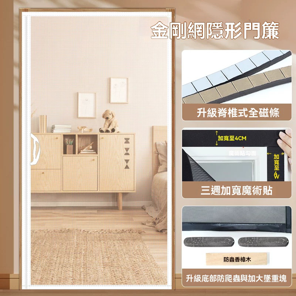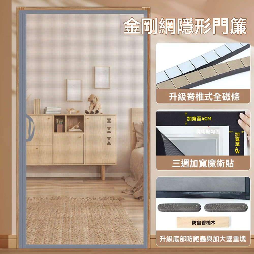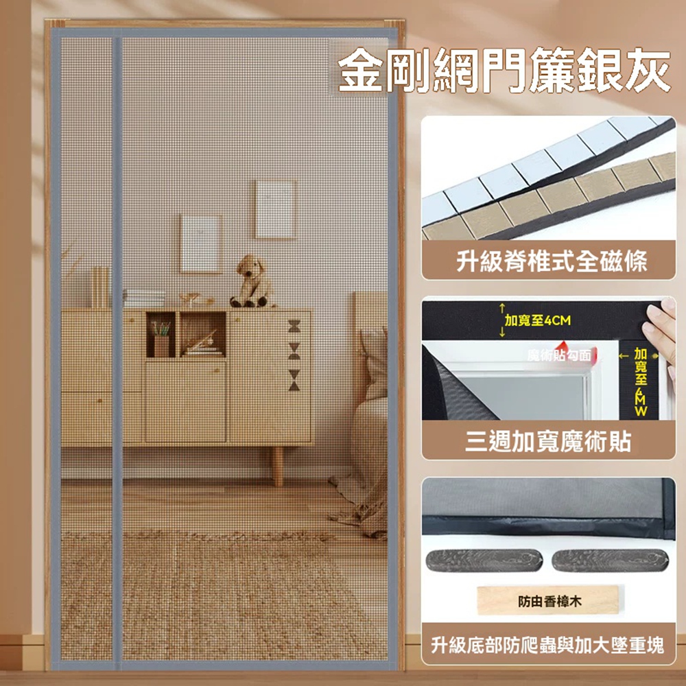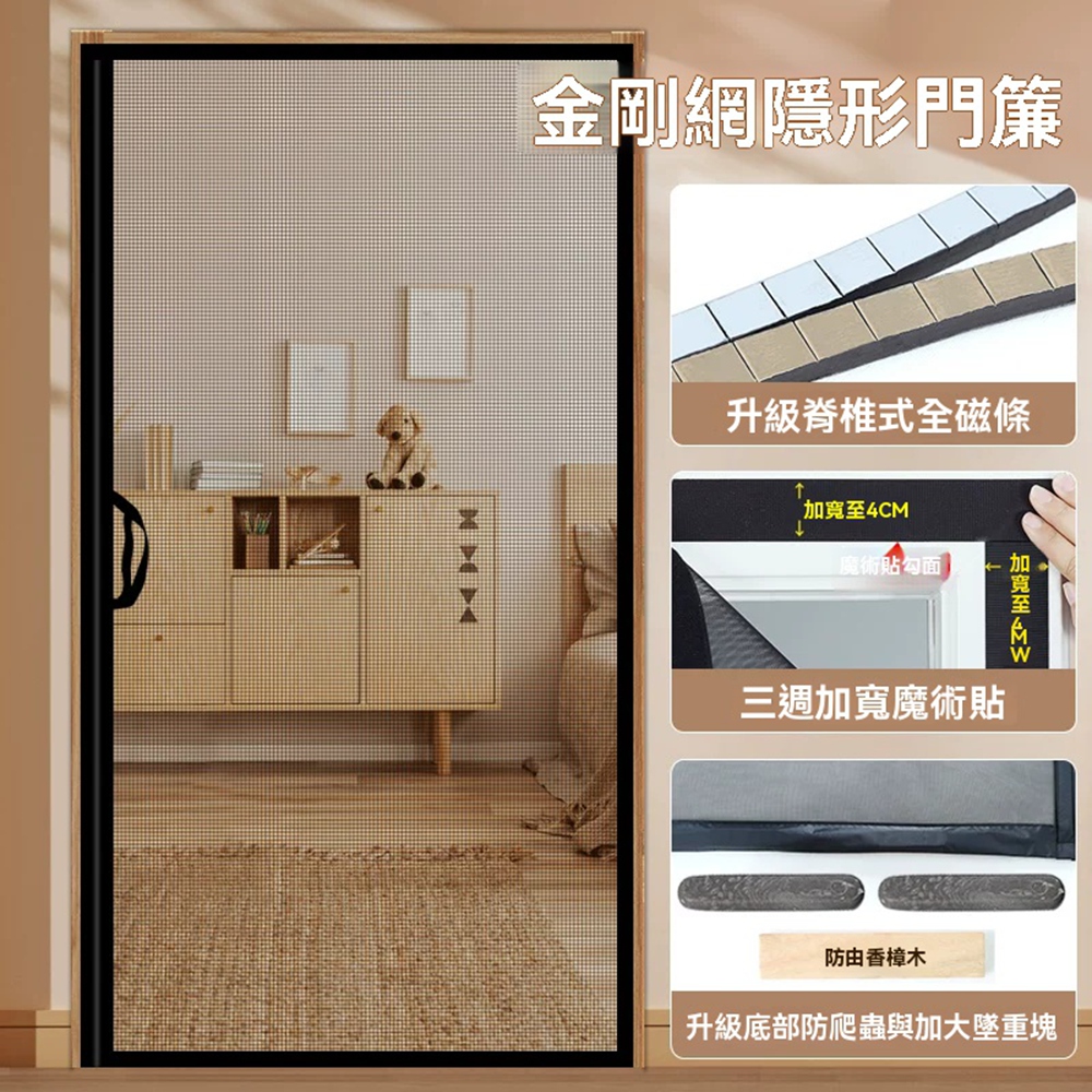 Secaii設彩品牌店側開防蚊磁性門簾 頂级静音防蚊門簾 防蚊蟲 防蚊門簾 門簾 可客製尺寸/加密網孔/耐磨耐抓